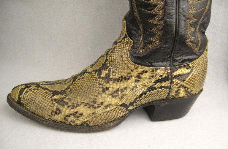 Ad Shop Exclusive Offers on Extensive Line of Products. These Snake Cowboy Boots are top of the line handmade western cowboy boots. Made from high quality leather and genuine python skin these two-tone leather cowboy boots from Mayura are really something special.